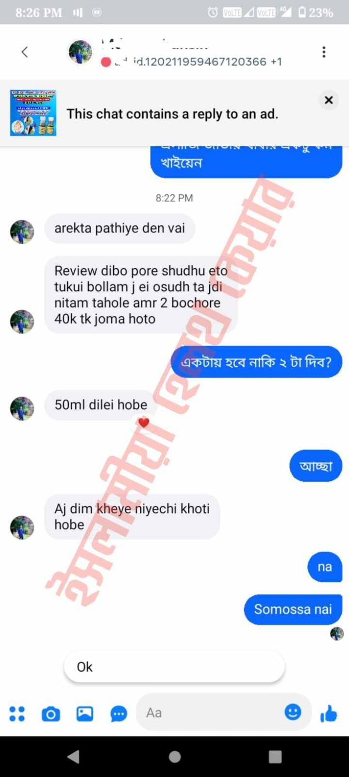 প্রিয় ক্রেতাগন, একজন মুসলিম ভাই হিসেবে আপনাদের কাছে হাত জোর করে অনুরোধ থাকবে। ঔষধ টি আপনার প্রয়োজন না থাকলে অর্ডার করে আমাদের ক্ষতি করবেন না। একটি পার্সেল পাঠাতে আমার প্রায় ১৩০ টাকা খরচ পরে। আমাদের ক্ষতি করলে আল্লাহর কাছে দায়ী থাকবেন।