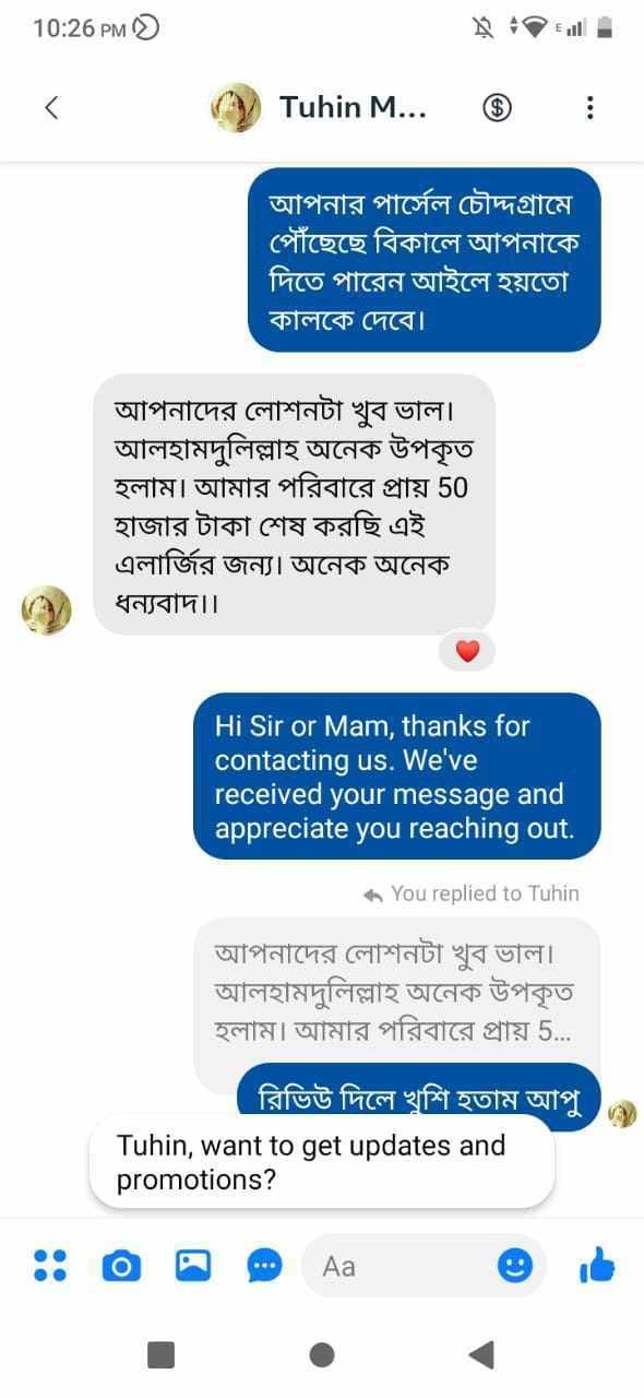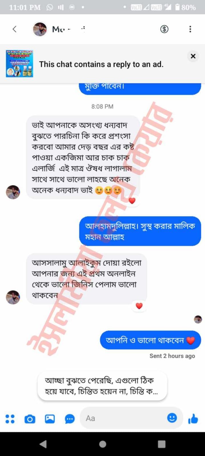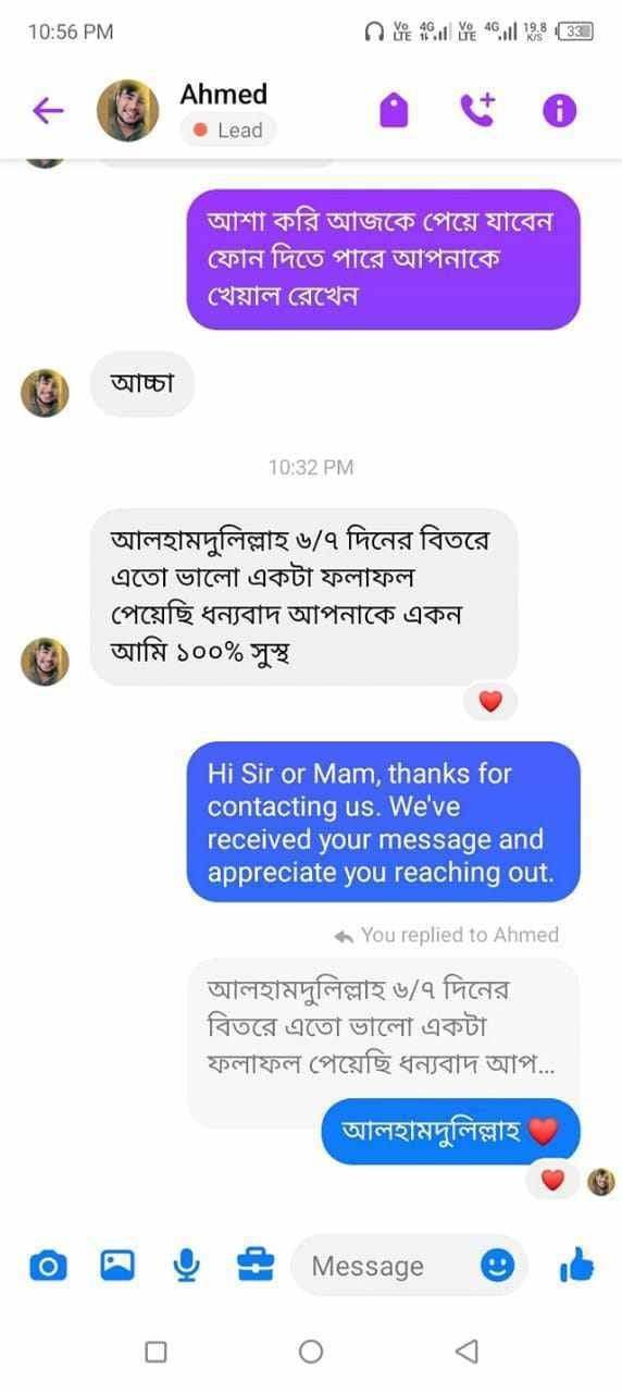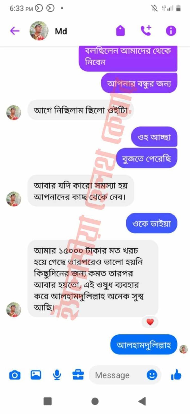 আপনি ভরসা করে নিতে পারেন, আমাদের কাছে এমন প্রচুর রোগী আসে যারা অনেক বড় ডাক্তার দেখিয়েছেন কিন্তু স্থায়ীভাবে কোথাও সমাধান পাননি। পরবর্তীতে আমাদের ওষুধ নিয়ে স্থায়ীভাবে সমাধান পেয়েছে। আলহামদুলিল্লাহ আপনি একবার নিয়ে ব্যবহার করে দেখুন ইনশাল্লাহ আপনি বুঝতে পারবেন আমাদের ওষুধ কতটা কার্যকরী।